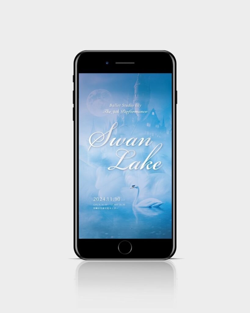 クリアな水面に映る白鳥はオデットの清らかさ気高さをイメージ。