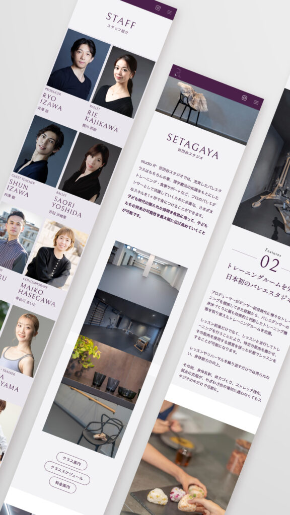 ロゴデザイン、ホームページ、Instagramアカウントのブランディング、スタジオ案内冊子まで一貫して手がけ、